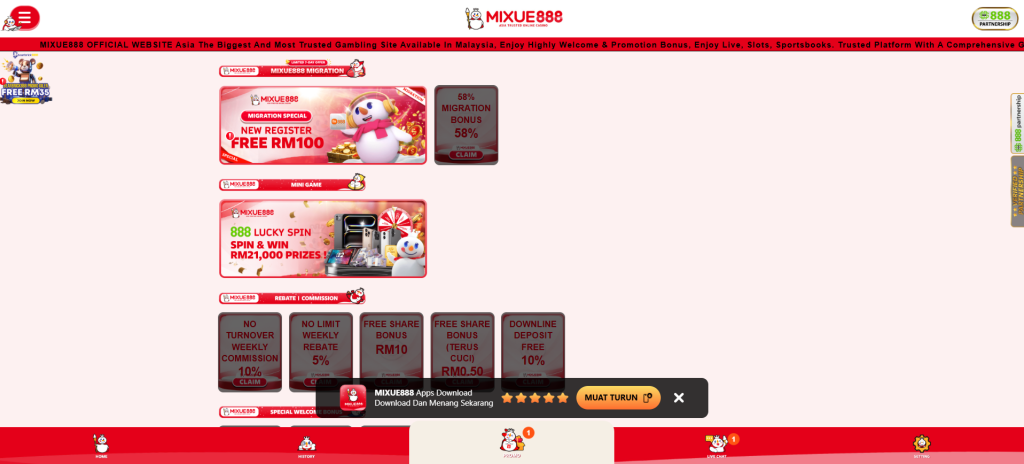 Mixue888 is a member of the 888 Partnership, which also includes brands like BabyShark22, Minion888, and Gardenia888. Known for its playful ice-themed branding and red-white color scheme, Mixue888 combines a cheerful identity with serious promotional value. With generous free credits, wide-ranging bonuses, and trusted security frameworks, Mixue888 is designed to offer Malaysian players a refreshing, rewarding casino experience.