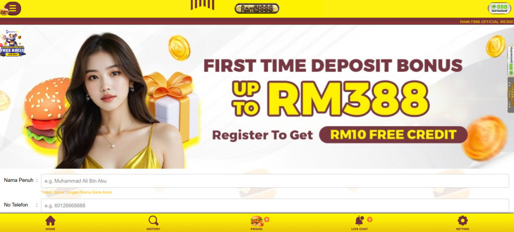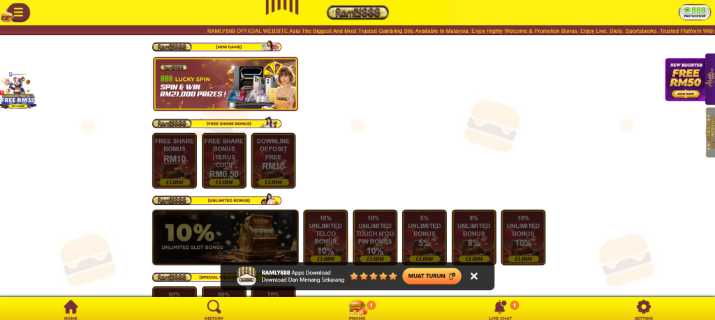 Ramly888 positions itself as a homegrown-style casino brand, recognizable by its branding that reflects local culture. It focuses on being accessible to everyday players, offering small entry deposits, practical rewards, and strong referral incentives. Its community-first approach makes it popular among Malaysian players who enjoy sharing promotions with friends while still having access to a full-featured online casino experience.